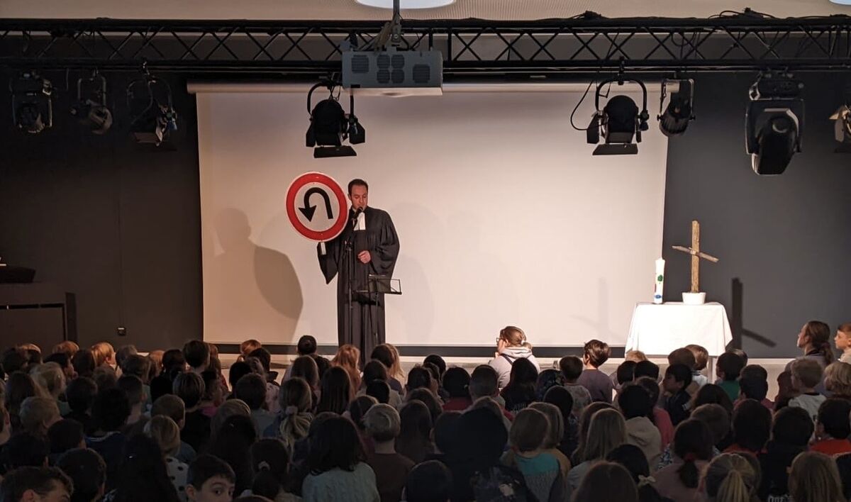 Einen wunderschönen Abschluss des Halbjahres erlebten wir Freitagmorgen mit einem stimmungsvollen Gottesdienst in der Aula. Pfarrer Manderla gestaltete die Feier mit einer kindgerechten Predigt, die zum Nachdenken anregte und dennoch fröhlich und verständlich war. Die musikalische Gestaltung mit ausgewählten Liedern, begleitet von passenden Bewegungen, machte den Gottesdienst zu einem besonderen Erlebnis für alle.