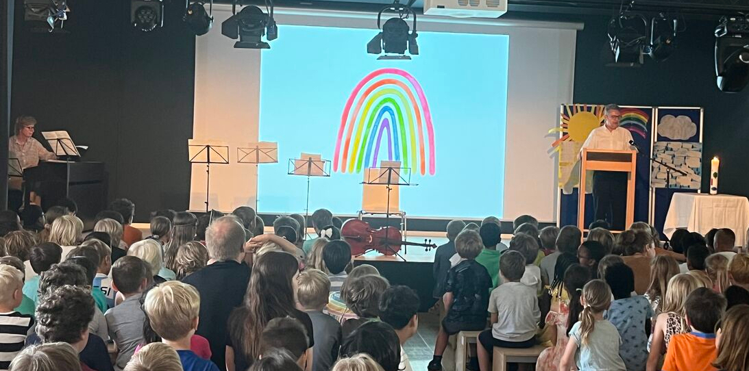 So wurden dieses Jahr die Klassen 4a, 4b und 4c in einem feierlichen Gottesdienst in der schuleigenen Aula gebührend verabschiedet.
