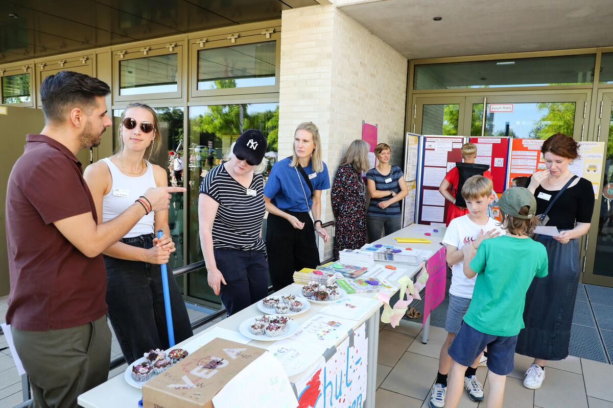 Die Projektwoche der Stufe 4 stand unter dem Motto „Wir für andere – Ich gebe meiner Gemeinschaft etwas zurück!“. Und das machten unsere Viertklässler auch. So besuchten sie unter anderem ein Seniorenheim und lasen den Bewohner:innen aus ihren Lieblingsbüchern vor. Auf dem Schulfest sammelten die Viertklässler Spenden für die EMA, boten Führungen an und verkauften Kuchen, um Spenden für den Kindergarten in Quilmes (Argentinien) zu sammeln. Einen ausführlichen Schülerbericht zur Projektwoche der Stufe 4 finden Sie hier.