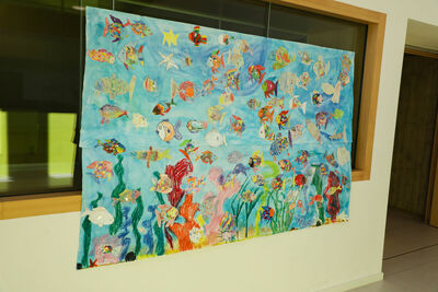 Das Thema „Ich bin ich“ stand im Fokus und die Kinder gestalteten im Laufe der Woche ein eigenes Lapbook über sich. Hierbei wurde tatkräftig gezeichnet, gemalt, ausgeschnitten und geklebt. Darüber hinaus lasen die Schüler:innen das Buch „der Regenbogenfisch“ und schufen einen eigenen einzigartigen Fisch, welcher auf der Unterwasserlandschaft der Kunst AG einen Platz gefunden hat.