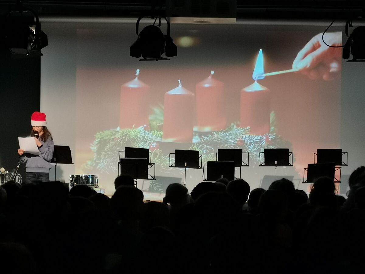 Advent in der EMA Auch dieses Jahr findet wieder jeden Montag unsere Adventsfeier in der Aula statt. Hierzu treffen sich alle Klassen in der Aula, um die Kerzen des Adventskranzes anzuzünden und gemeinsam Lieder zu singen.