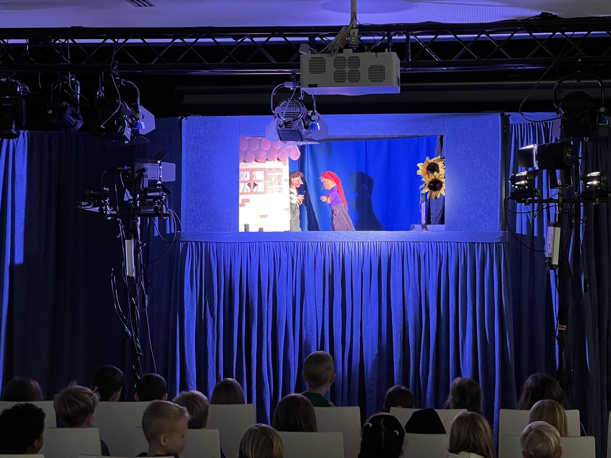 Am Dienstag, den 05.12.2023 durften alle Kinder der EMA ein Figurenspiel über das Kinderbuch "Räuber Hotzenplotz" sehen. Hierzu wurde die gesamte Aula in ein Kasperle-Theater umgebaut.